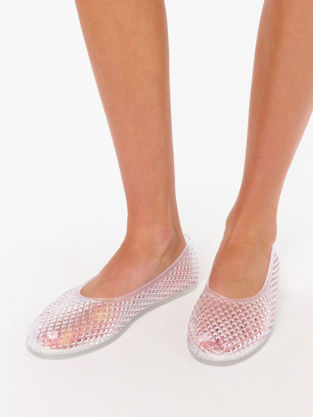 A modern take on a nostalgic favorite, the Steve Madden Gyzmo Jelly Flat in Clear brings playful charm and contemporary style to your warm-weather wardrobe. Crafted from translucent jelly material, this flat features a minimal silhouette with a sleek, barely-there look that pairs effortlessly with everything from swimsuits to sundresses. Lightweight, water-friendly, and easy to slip on, it's the perfect blend of fun and function for sunny days.